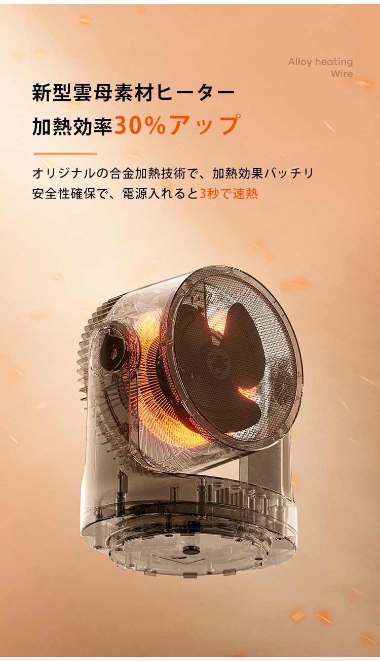 3秒で30畳の部屋を25度に暖め、24時間の電気代は1円!