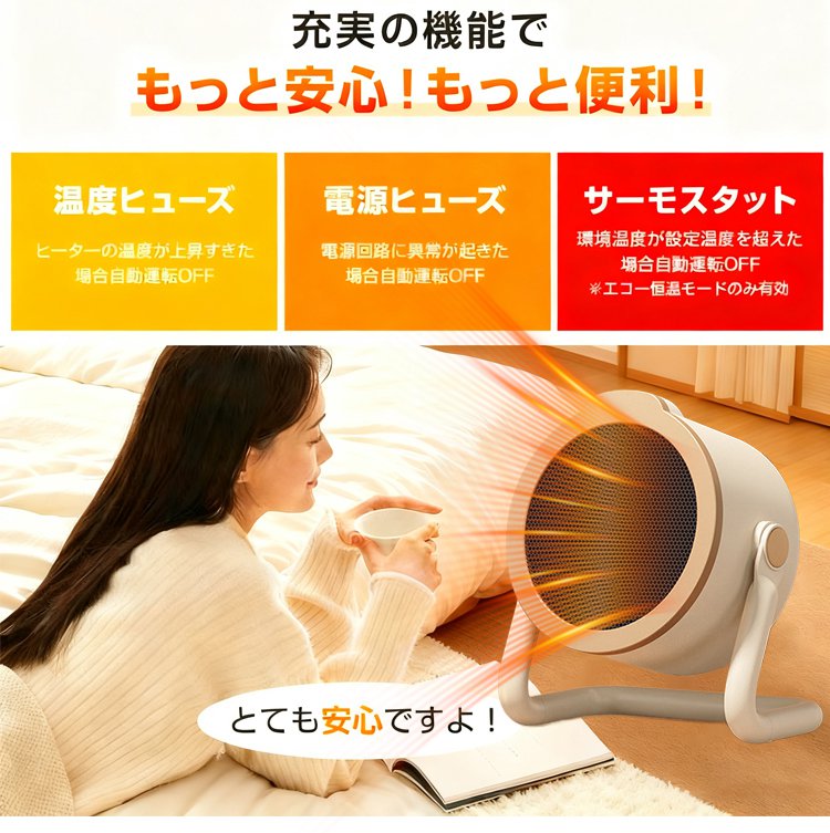 ✅360°の循環温風で、部屋の隅々まで暖かさを届けます。リビングに1台置くだけで、家族みんなが快適に過ごせます。