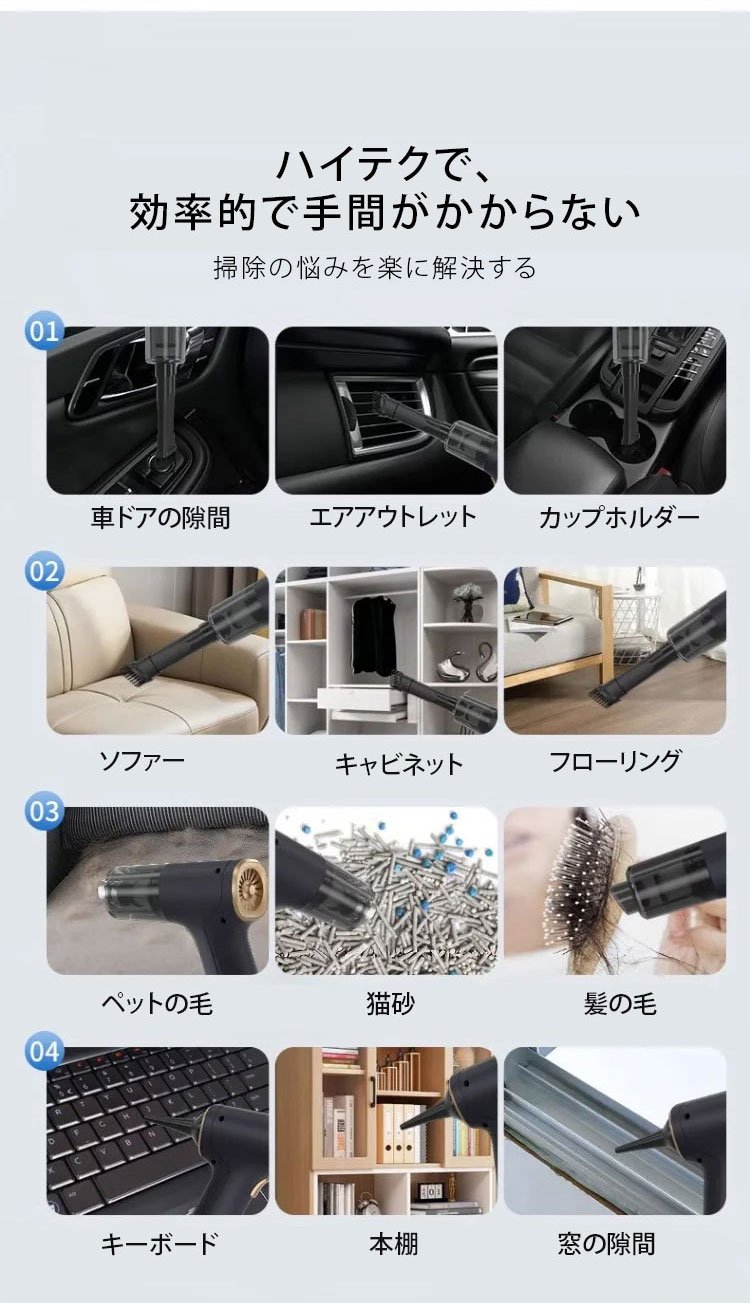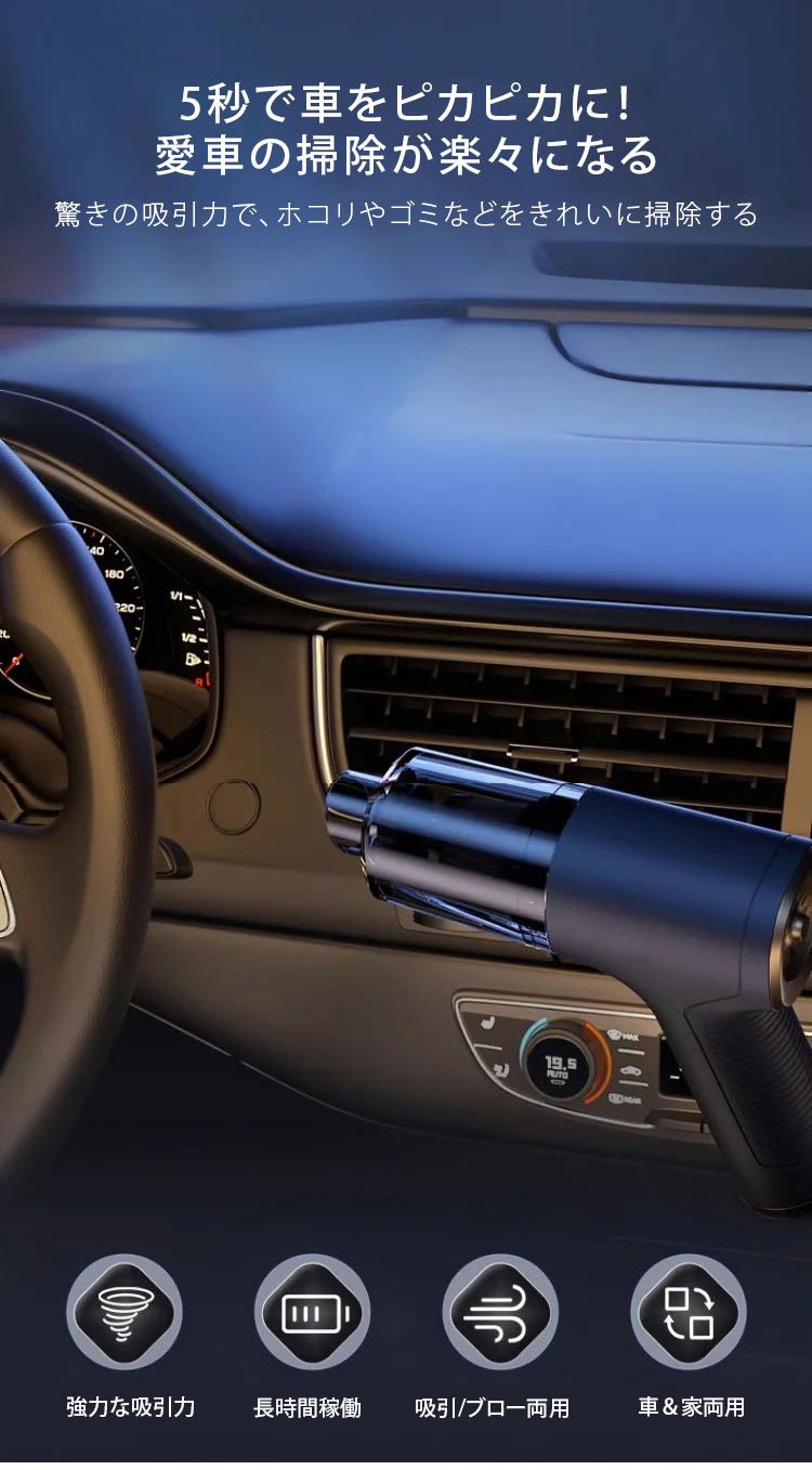 車内の砂利・食べカスを瞬殺!驚きの吸着力で隙間のホコリもペットの毛も吸引。コードレスで楽々お手入れ