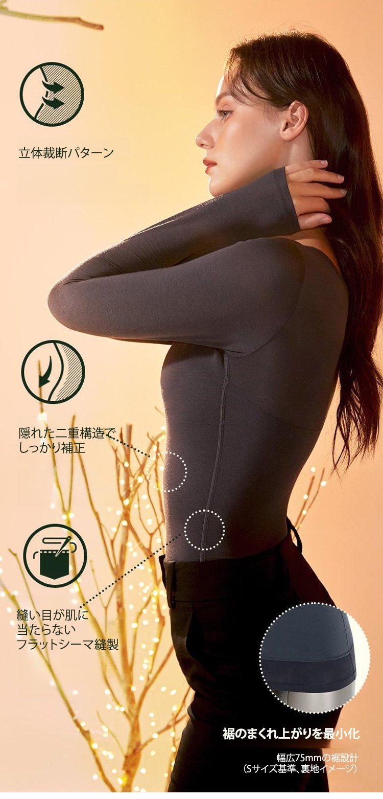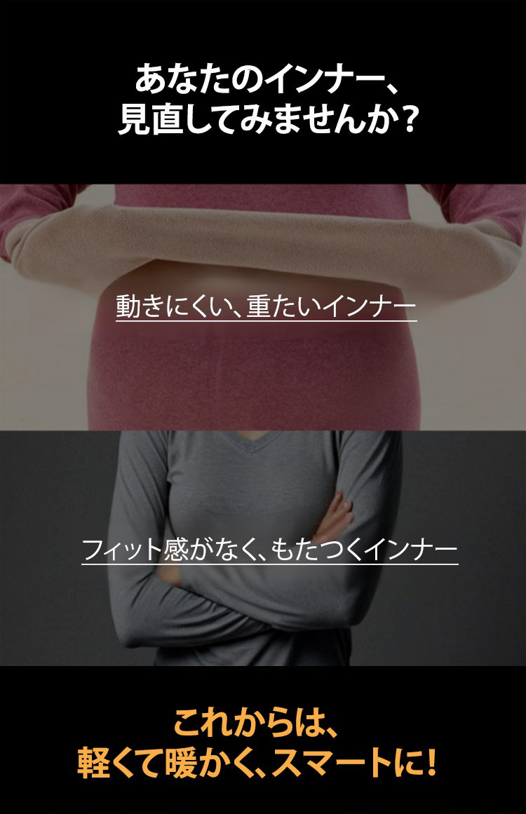 -10°の過酷な中でも暖かくスリムに見えるスタイル! 胸パッド自体を備え、ヒアルロン酸成分を配布して肌