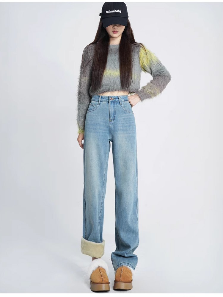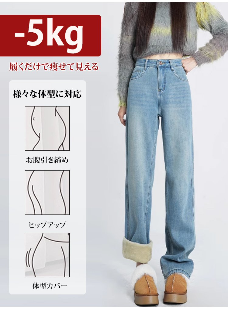 【今年の限定版、先着100名様限定で半額】裏起毛スリムストレートデニムパンツ