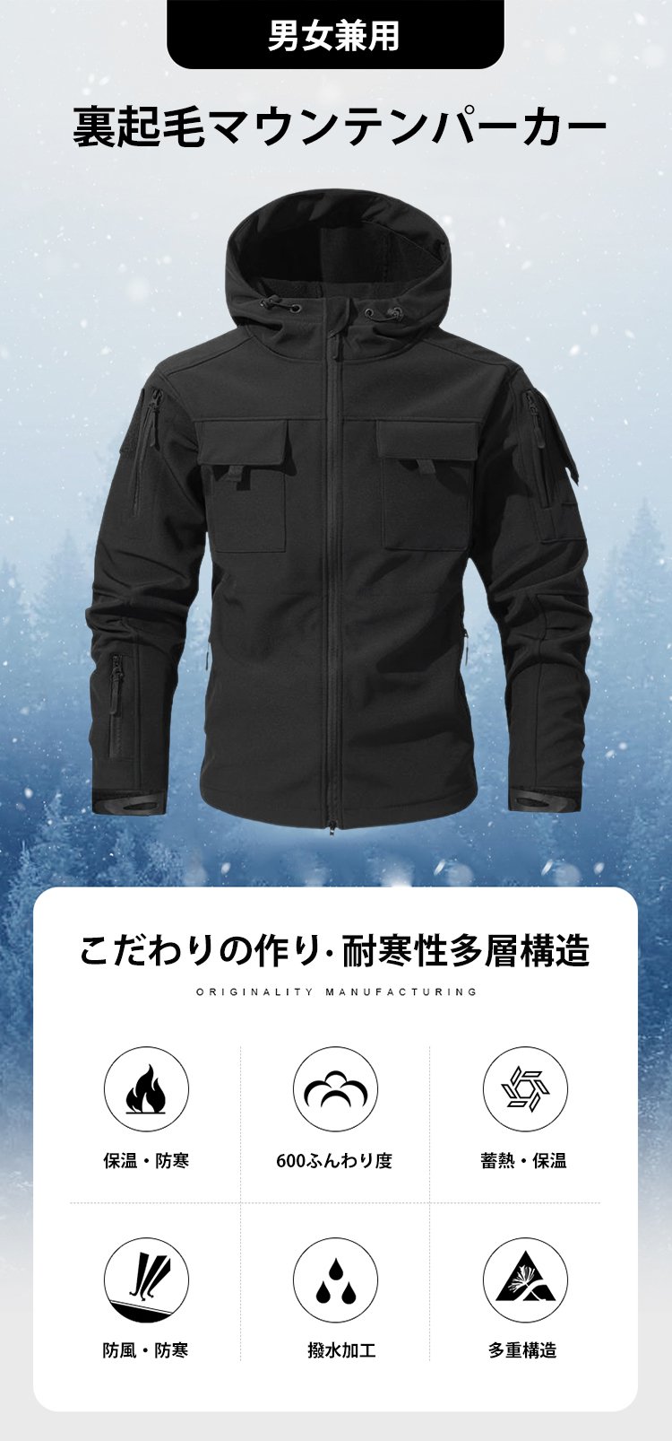 【先着100名様限定で半額】多ポケット裏起毛マウンテンパーカー